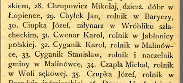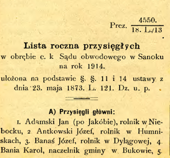 Z Dziennika Urzędowego c.k. Starostwa i c.k. Rady szkolnej okręgowej w Sanoku z dnia 15 lutego 1914 roku dowiadujemy się, że prapradziadek Józef Ciupka, młynarz z Wróblika Szlacheckiego, był jednym z głównych przysięgłych w obrębie c.k. Sądu obwodowego w Sanoku w roku 1914.